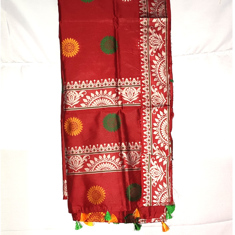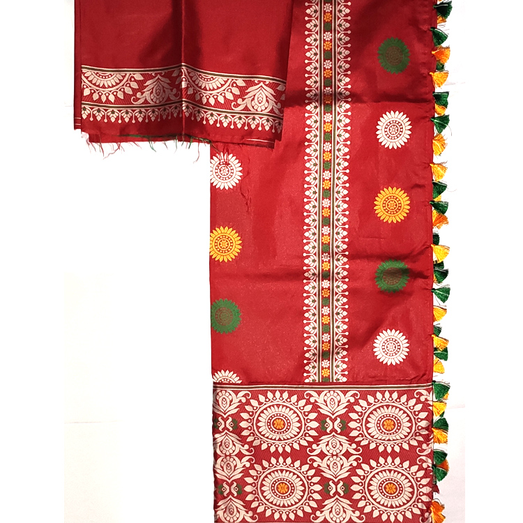 About Dokhona: Dokhona is the traditional dress of Bodo women, consisting of a single length of cloth (typically about 3 meters long and 1.5 meters wide) that is wrapped around the body from the chest to the ankles, covering the lower part in a graceful style.